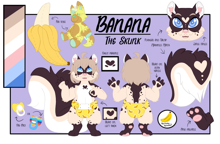 A ref for my new OC Lilac! <3 Lilac is a skox. A skunk fox hybrid.