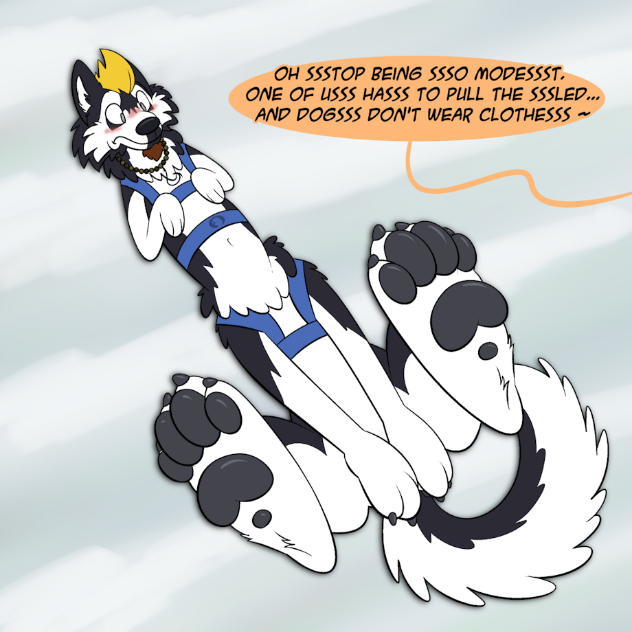 Kathy needed a someone to pull her sled, so she used her magic crystal on Luke so that he could pull it. He might look embarrassed, but believe me, he's actually really happy in this form.
