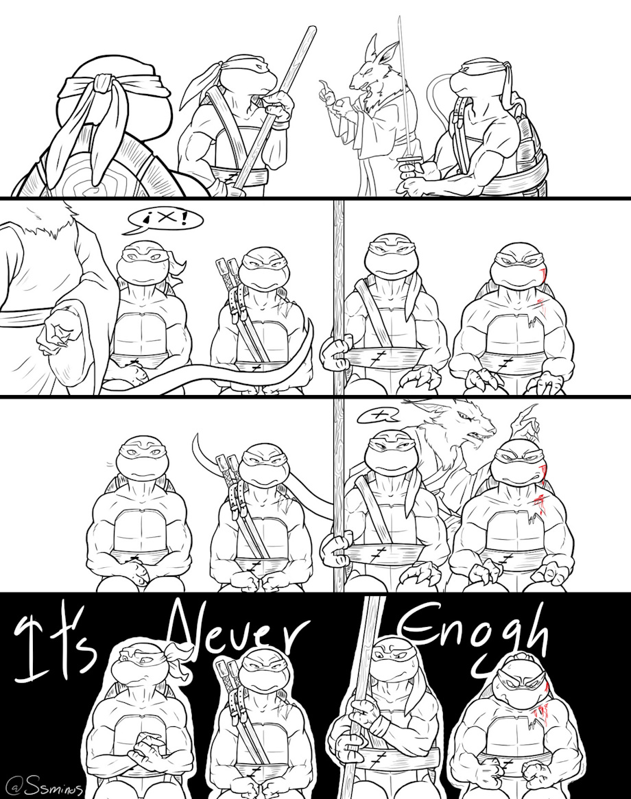 mmm this draw is a bit short but I think the idea is clear...sons or killing tools, Splinter is a fcker bastard of father (well... Mirage) but I love the rotmnt and 2012 Splinter, my favorites version xD