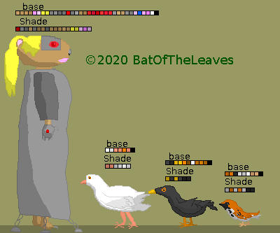 Crosspost of https://www.furaffinity.net/view/39718872/ which is an improvement on https://inkbunny.net/s/2313218 and stuff. Using all the newer versions of the birds and showing palettes using both the shaded layers and the unshaded base ones. Well, it shows the colors only seen after shading is applied on separate lines. Is her name kind of over the top? Well, I mean we get she is peaceful and hangs around small passerine and columbid birds. I drew this late at night and didn't decide to make it public until after I slept and woke up. Although I am up early today because I was needed to shovel snow.
