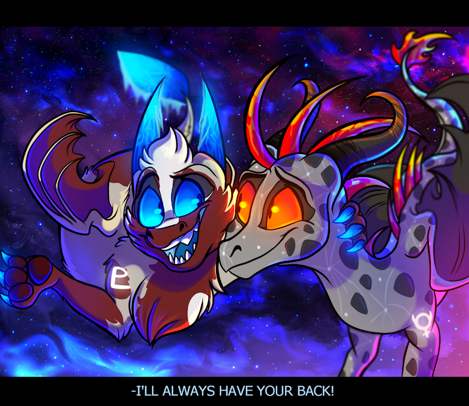 I wanted to do a fake screenshot type of thing :D I'm still getting used to Clip Studio Paint instead of GIMP especially doing backgrounds ;w; I figured out how to transfer my brushes into it so that helps :XD: I really love how it came out <3 Anyway, I love Pluto and Mercury's friendship it's too wholesome ;W;