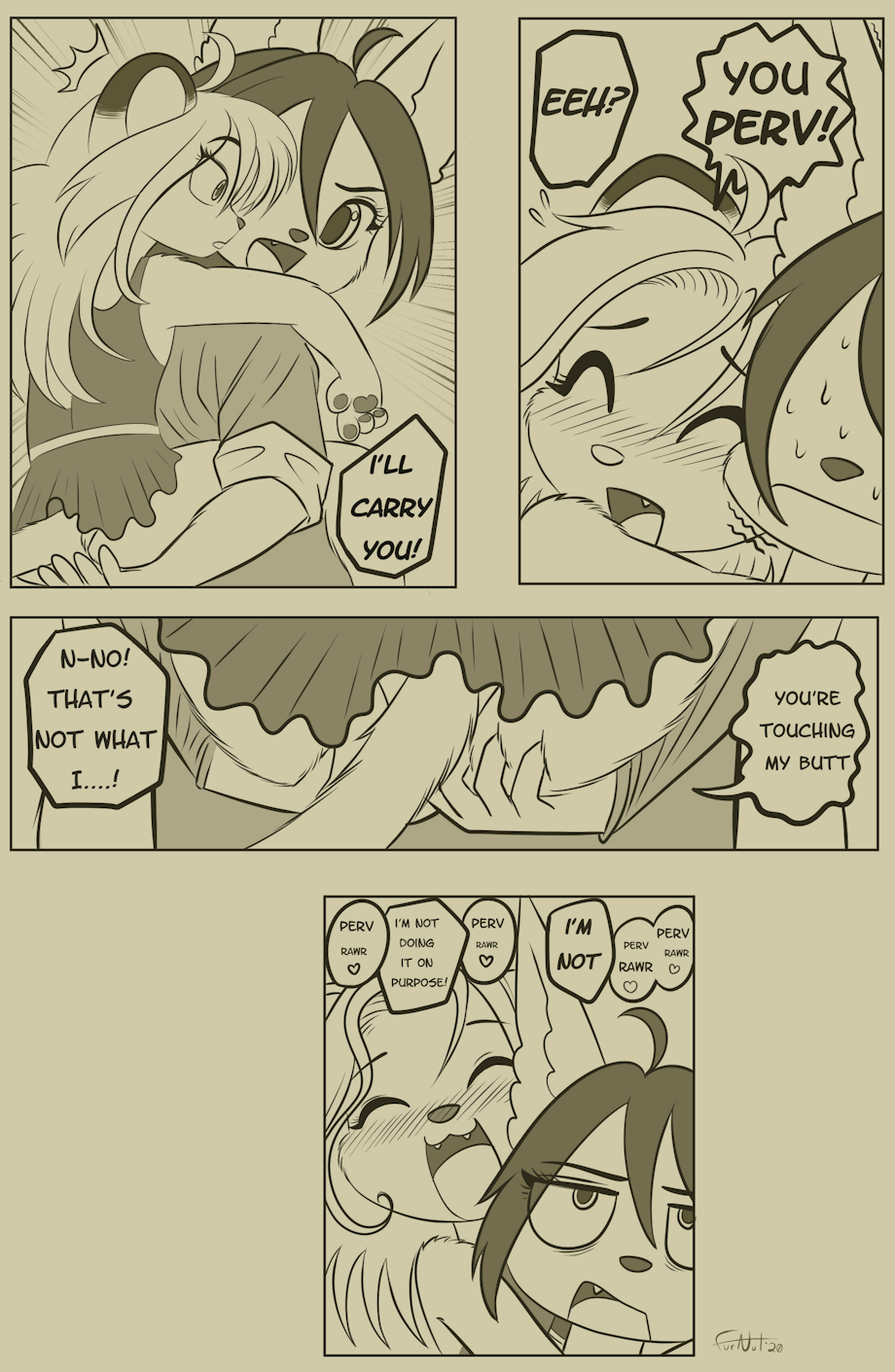 for me I'd be proud, I'd be like "yeah I'm perv, but at least I'm not lifting you up and putting your butt on my face then I'd really be a perv" because I love butts specially on my face XD