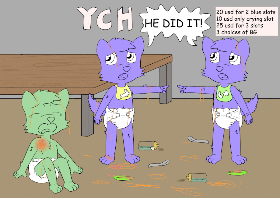 Also, diapers aren't obligatory, you can choose diapers, pullups or underwear. and for inkbunny only, no undies at all