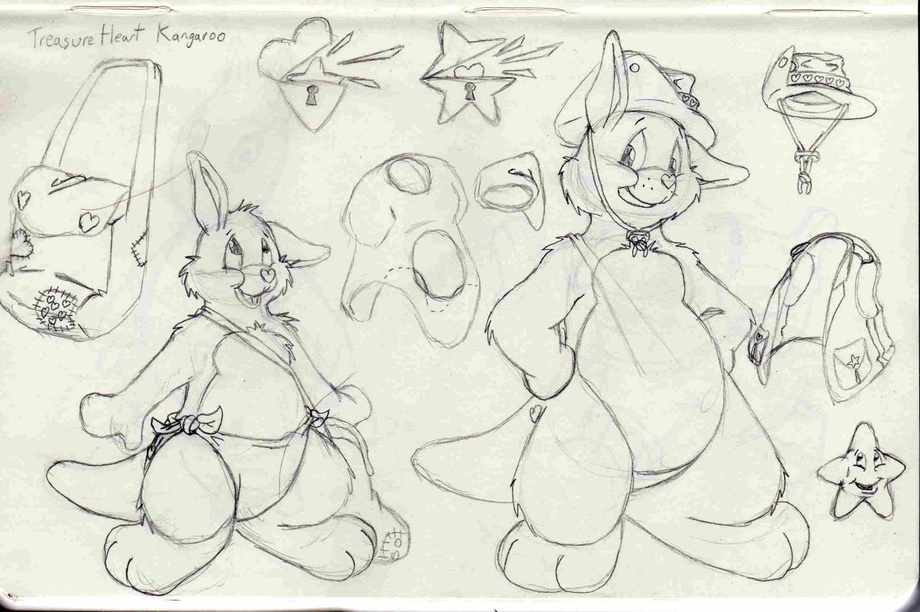 Yes...I have succumbed to the fad that's floating around my circle of friends....Making a Carebear Cousin of my species. Enter: Treasureheart Roo-he always has his messenger bag and vest covered in pockets, filled with things that make people happy! Woohoo!