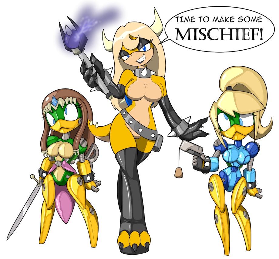 Decided to bring back my old koopa OC, Miscief Koopa, along with two Mecha Koopa slaves, Zelda and Samus!