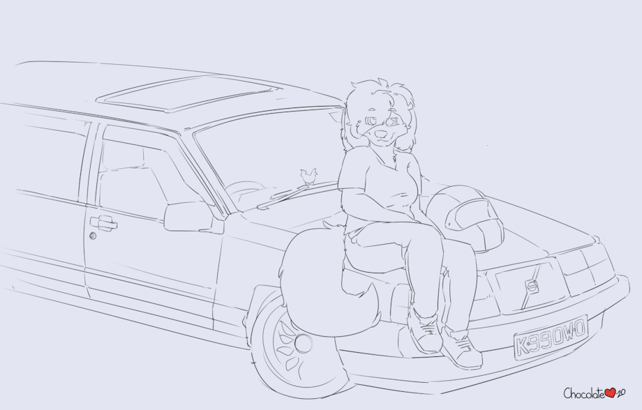 Arwyn had a photo she was quite pleased with of herself in suit while sitting on her car which she's been working on a lot over 2020, and asked me to use it as direct reference for this commission. I haven't drawn all that many mechanical things as of late so this was fun to revisit.