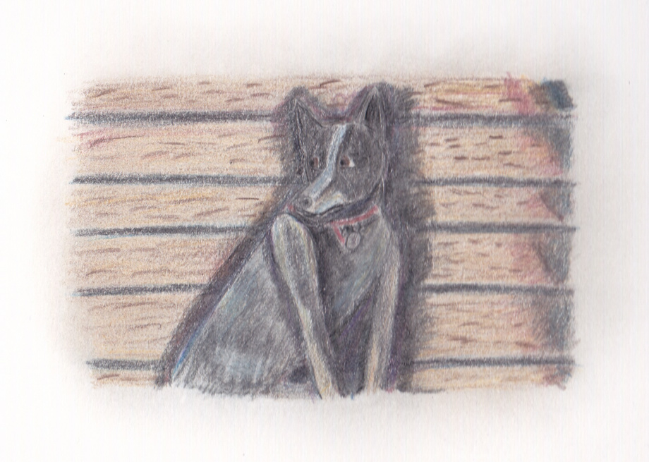 I attended an art seminar on 11/5/2011 and this is the result. goal was to take a picture from a pile of magazines and use as a reference. The dog referenced in the pic is a blue healer named ringo. This was also my first time using Bristol Board