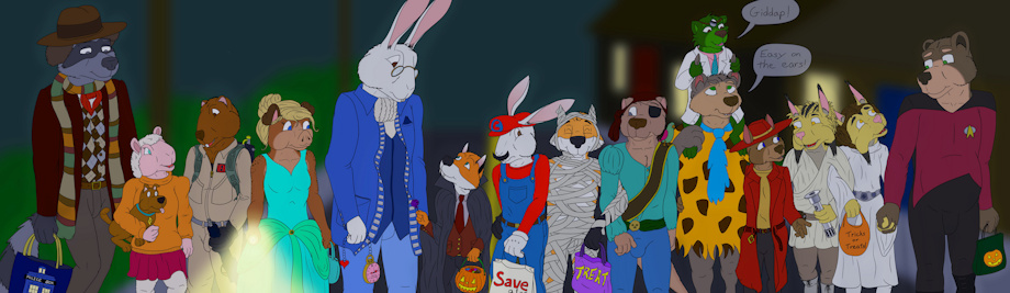 From left to right: wonka(myself) as the 4th Doctor, my characters Lilly (Velma from Scooby Doo), Marcus (Ghost Busters 1), and