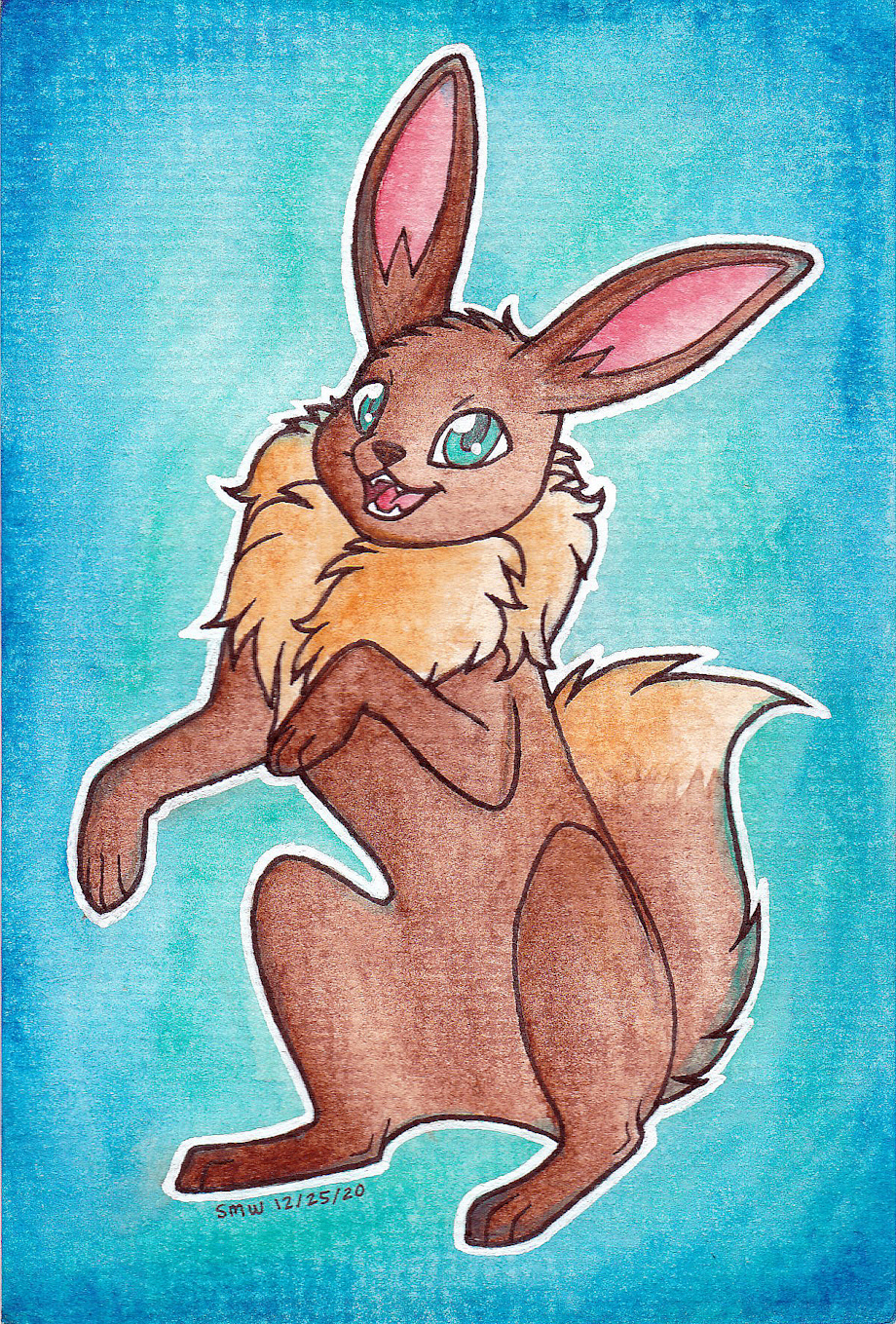 I had sketched this Eevee in my little watercolor book some months ago, but never finished it or did anything with it. Well, after my gift was finished, I was still in a big watercolor mood, so I decided to finish it up. I really like the end result, I'm glad I finally finished it. <3