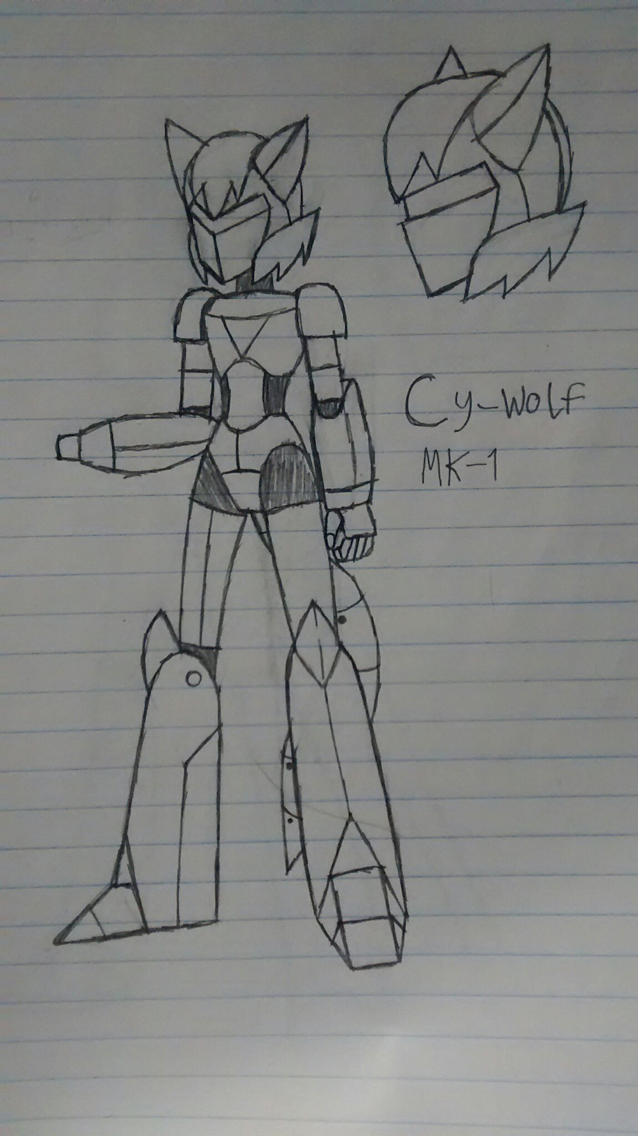 MK-I Cy-wolves are made of slightly lesser materials due to production costs. The black areas are covered in Kevlar. The internal skeleton is comprised of strong aluminum, and the external armor is made up of thin aluminum. Cy-wolves designs are like this for easy modifications when needed.