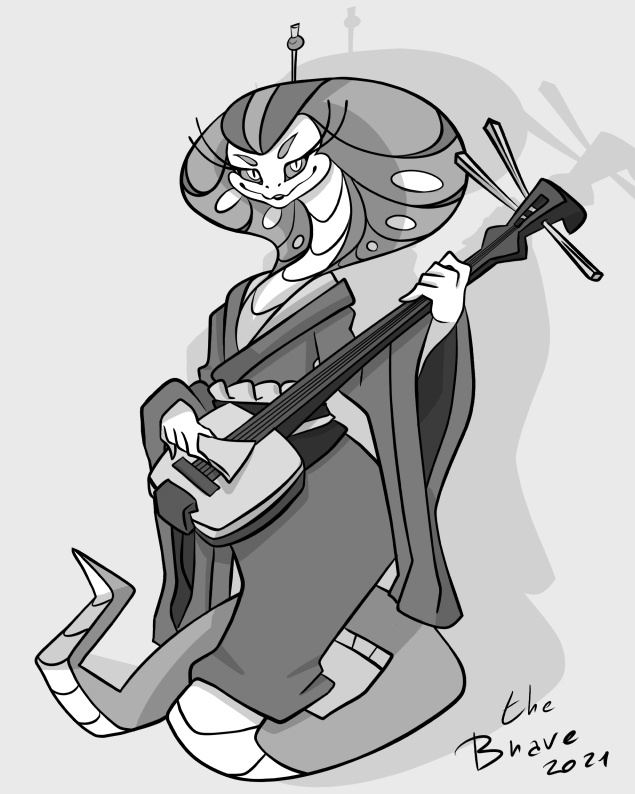 Rokurokubi is a japanese monster with a long neck, so the connection with snakes was pretty easy.
