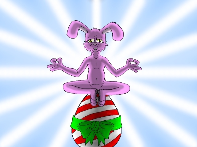 Thus, my odd little imagination spewed forth this pink bunny, sitting on a christmas coloured easter egg no less, while I attempted to acheive that state of "Inner Peace" that I so desperately require to draw...