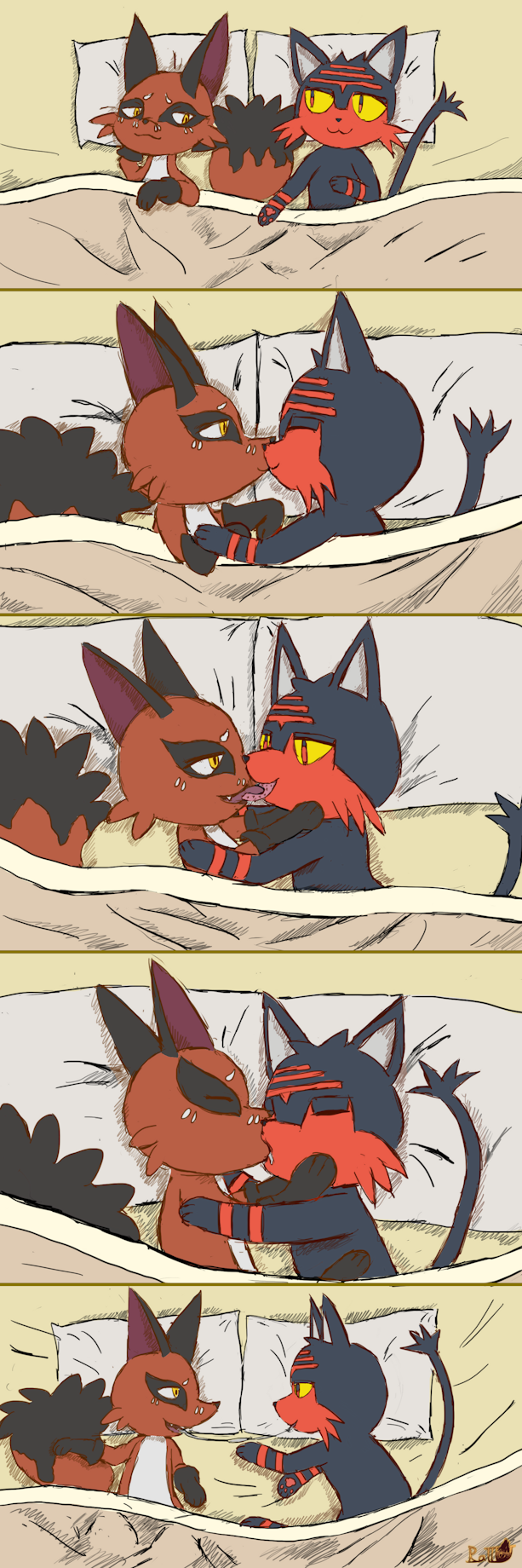 Character Gaggo (male Litten) and Noir (female Nickit) belongs to Gaggosmies.