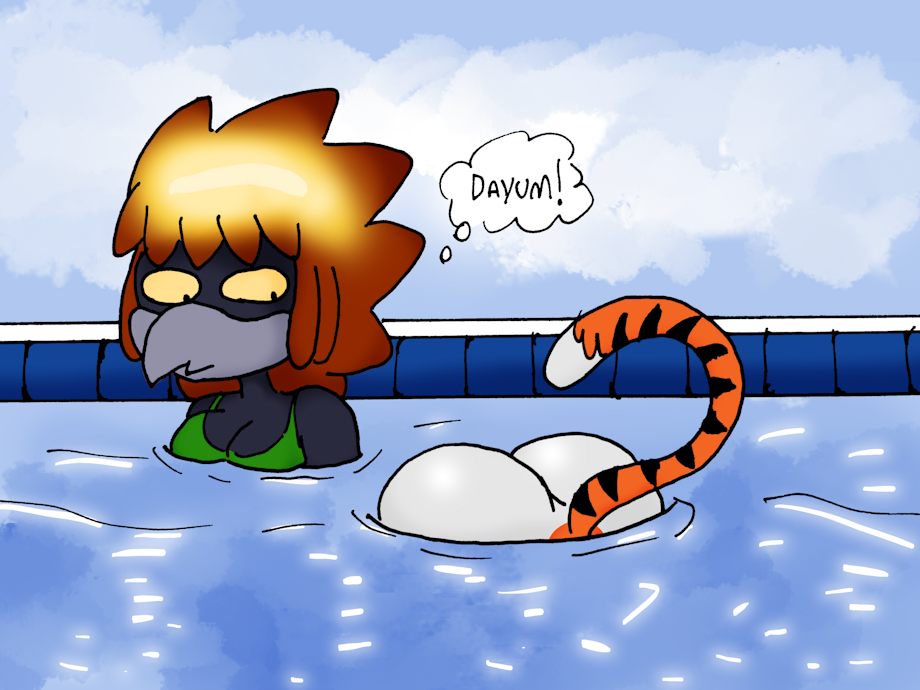 Odile has seemed to have lost her bikini bottom! while she searches for it, Slash admires the passing bare bubble butt!
