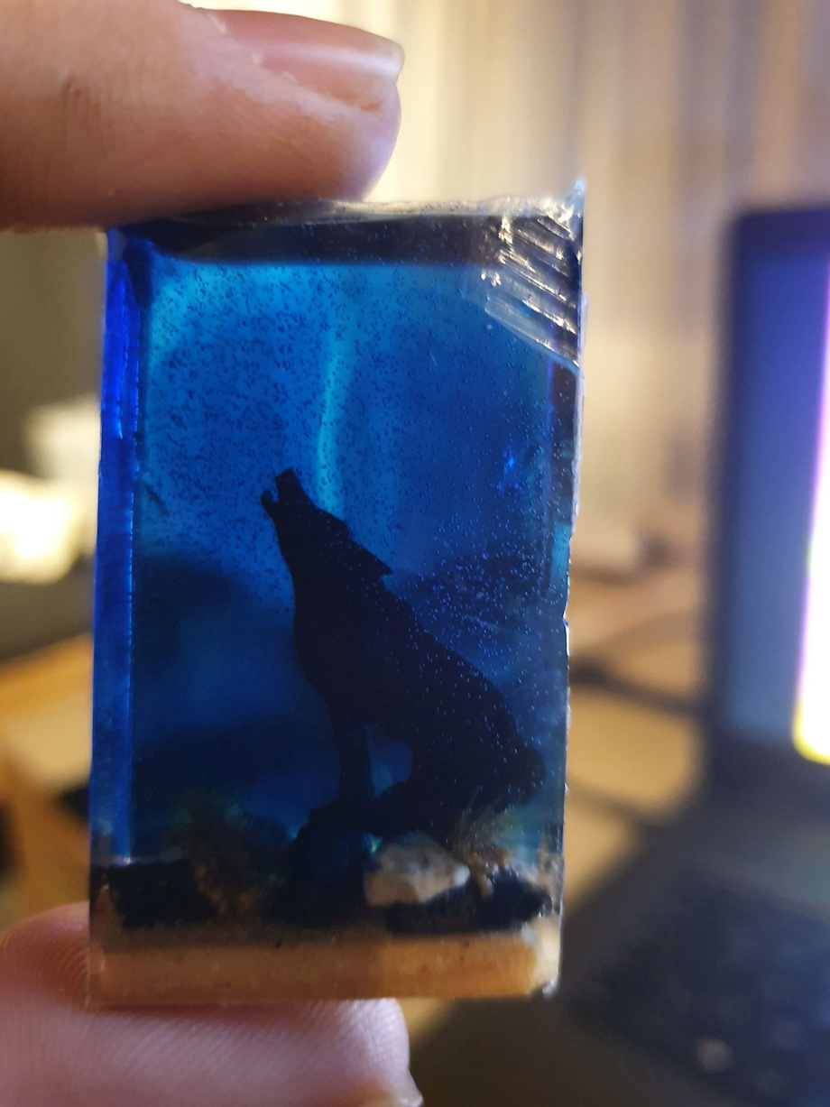 The resin is colored in 4 differrent colors which blend quit nicely into each other