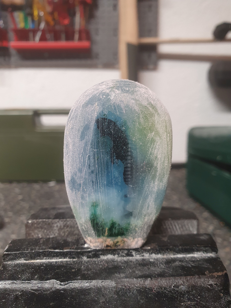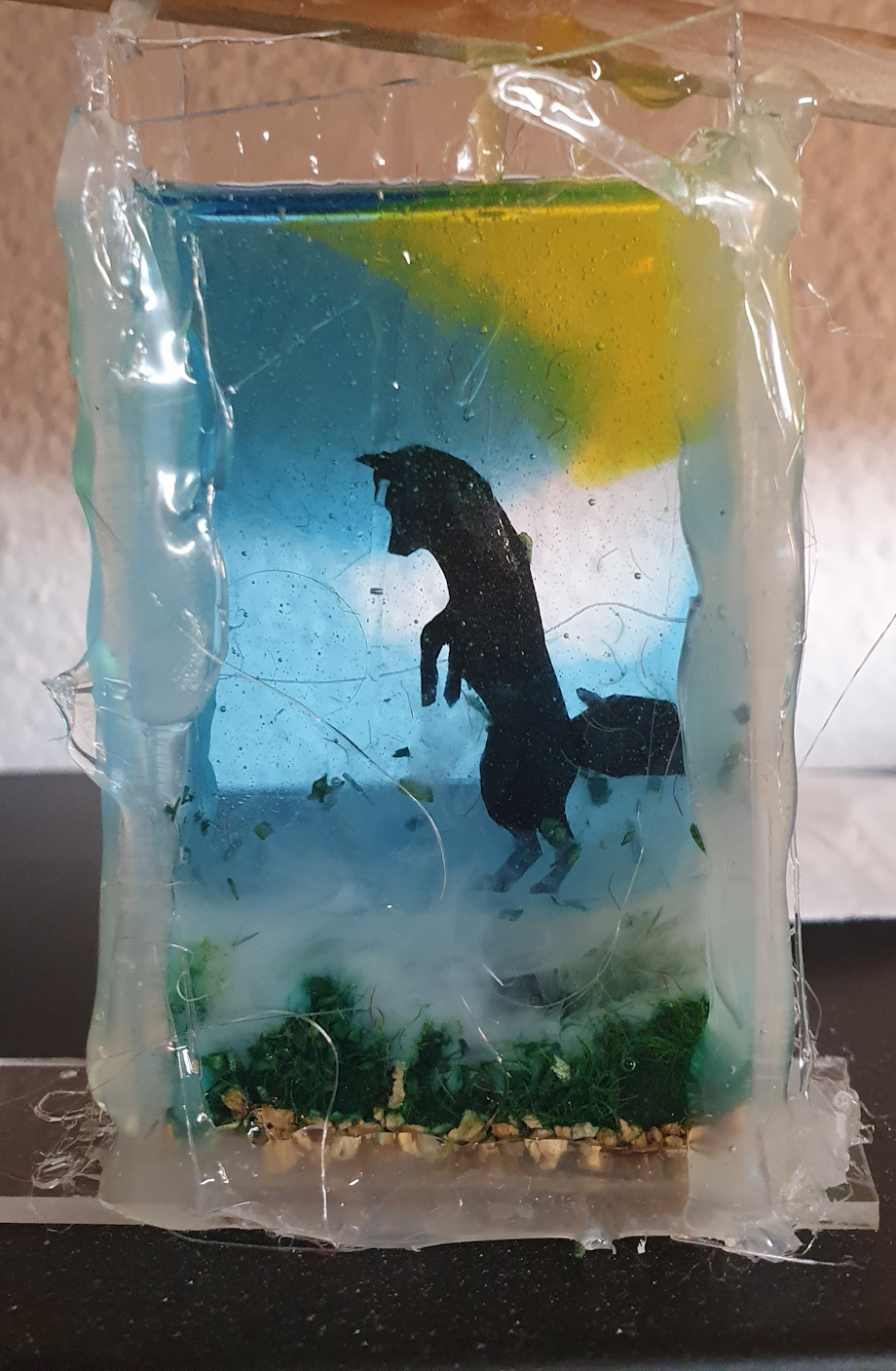 A pouncing Fox in a snowcovered patch of Gras on a sunny day