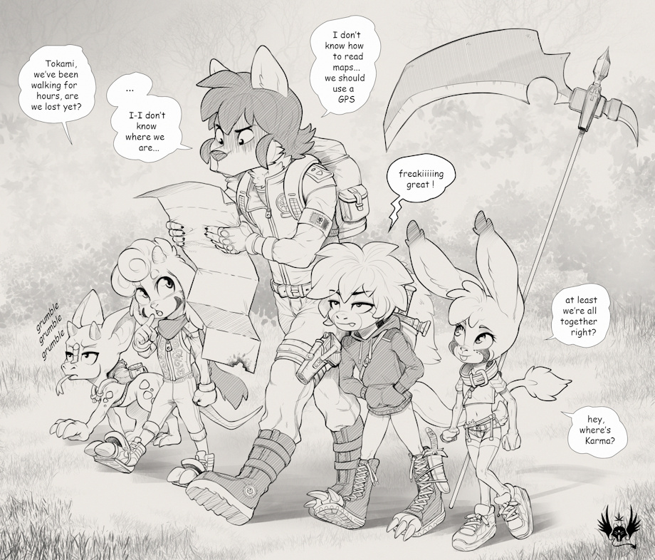 I absolutely love this it's a fun blend of RPG and modern day XD wish I could have adventures like this one. ^^ Lovely work!
