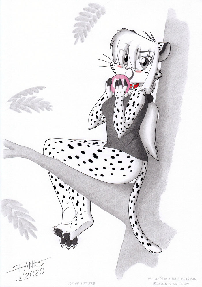 Up in the trees of the savannah Vanilla is sitting and enjouys the air, the view and her vegetarian kitty Daifuku Mochi. It's easy for her to climb a tree as cheetah up in the trees. It seems like for us this is a bit difficult. Vanilla is a bit younger as on the other pictures... just for fun^^