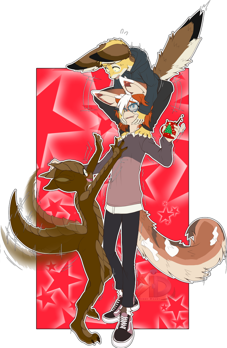 Poor fenfen, he seems so scared, Cocoa! what the hell, leave the fen alone or I'll slap you in the butt >=C Although to be fair, I don't know who is having a worse time here, Kiry who is running away from Cocoa, or Elly who is having to deal with his little weight on her shoulders, his little scratches and Cocoa jumping like crazy practically over her XD Poor foxes tho.
