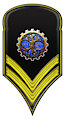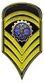 These are the generic badges for the heavy infantry. different divisions of the armed forces have different colors (light infantry, air force, navy). different companies have different insignia within the larger triangle, and different companies have different letters within the diamond on the bottom