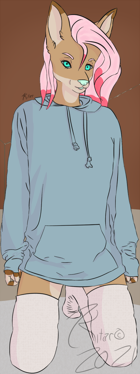 So, I figured that I would keep up with art. Here we have Kiki kneeling down in an oversized hoodie.