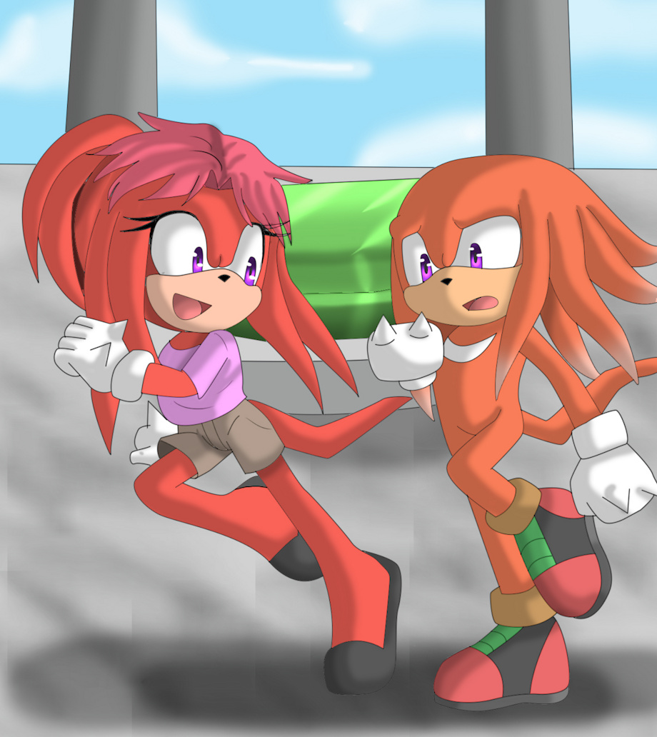 Children of Knuckles from different mothers. Lara-Su, daughter of Julie-Su and Locke, son of Shade. Both have 6 years of age (Lara-Su is eldest for 3 days). Lara-Su is more athletic one as her father and Locke is the erudite one as his paternal grandfather.