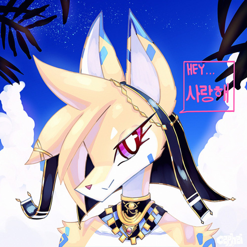 It's been a while since I updated my profile ID. Cephei is getting his Egyptian attire on point. The head cloth helps keep the sun from completely blasting him. Don't stare too deeply into his eyes though, you might start feeling different.