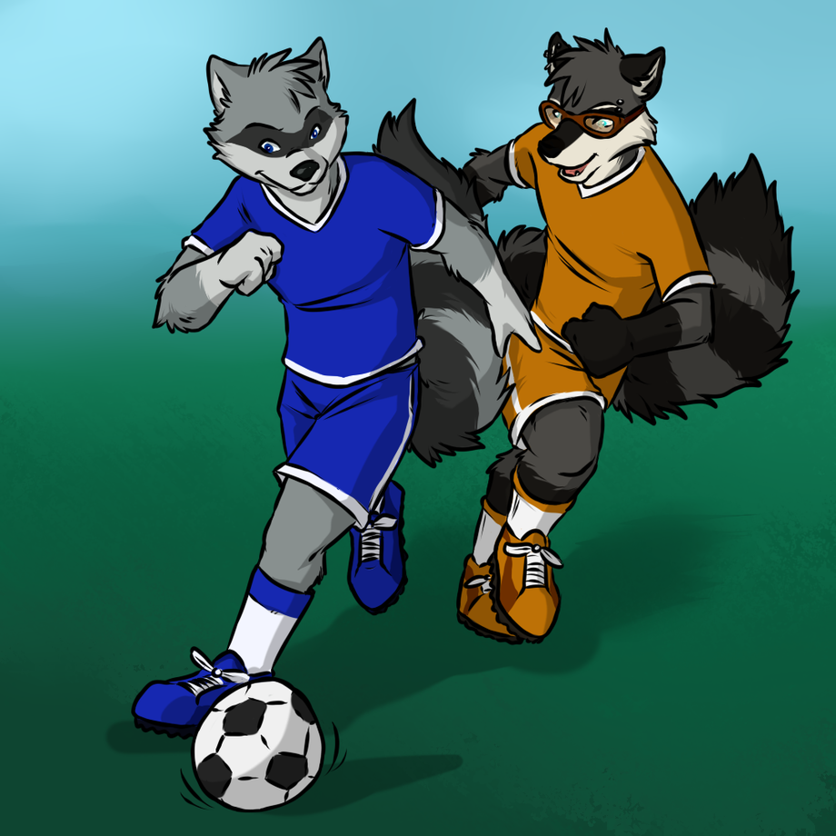 A lovely commission of me and @ShiroSirius playing a friendly game of football.