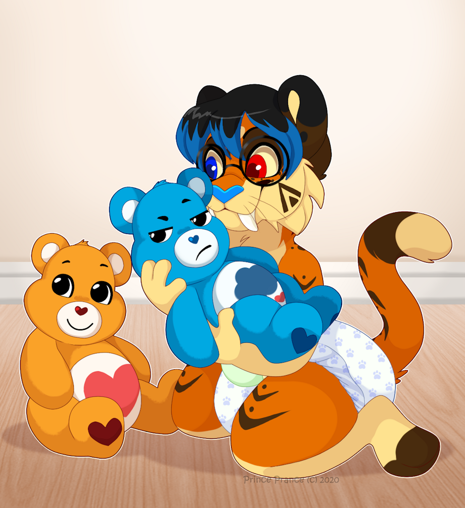 Little Hunter playing with his Grumpy Bear and TenderHeart! He loves his Care Bears!