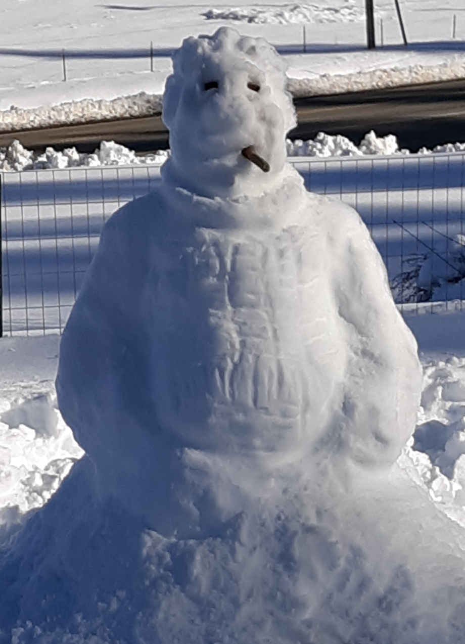 For about a week now the snow has been at least three feet deep here. I was bored...and inspired to quickly make this guy, Bob, the other day. Unfortunately for Bob, the sun came out, and the right side of his face is really taking a beating. But he's cool with it, because he knows nobody lives forever, and he has his cigar.