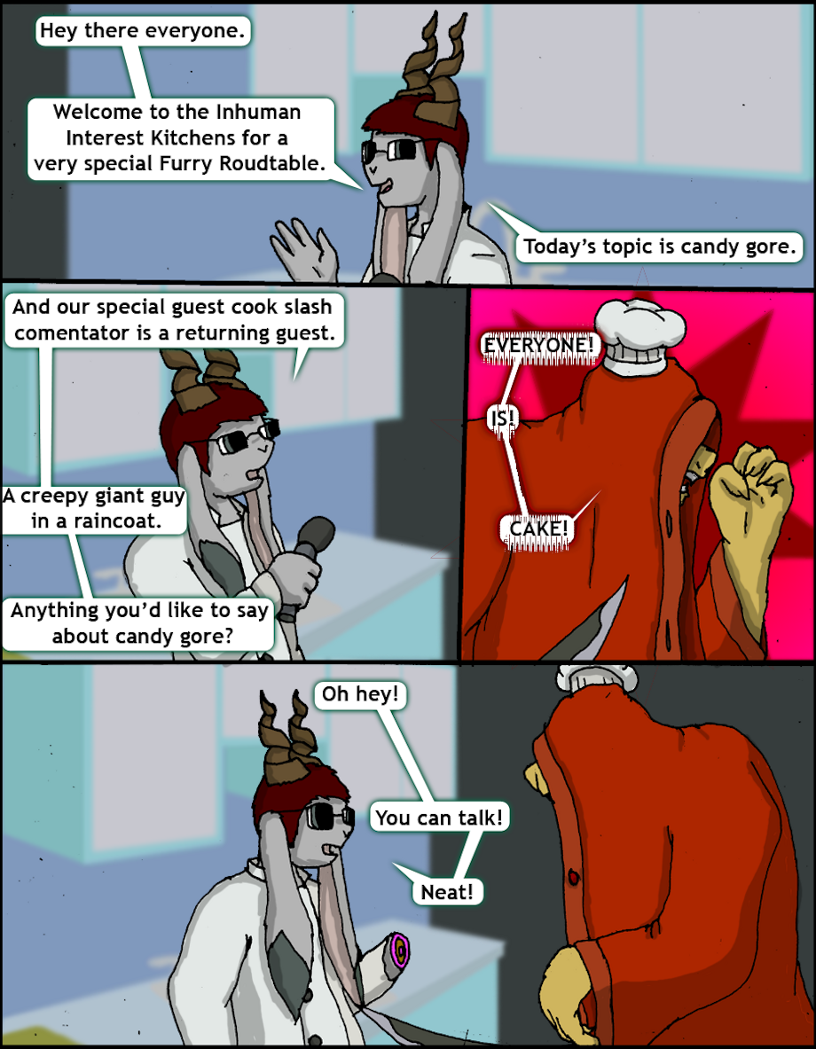 For what it's worth I'm aware that characters don't strictly have to be made of sweets to qualify for candy gore, the injury just needs to be brightly colored.