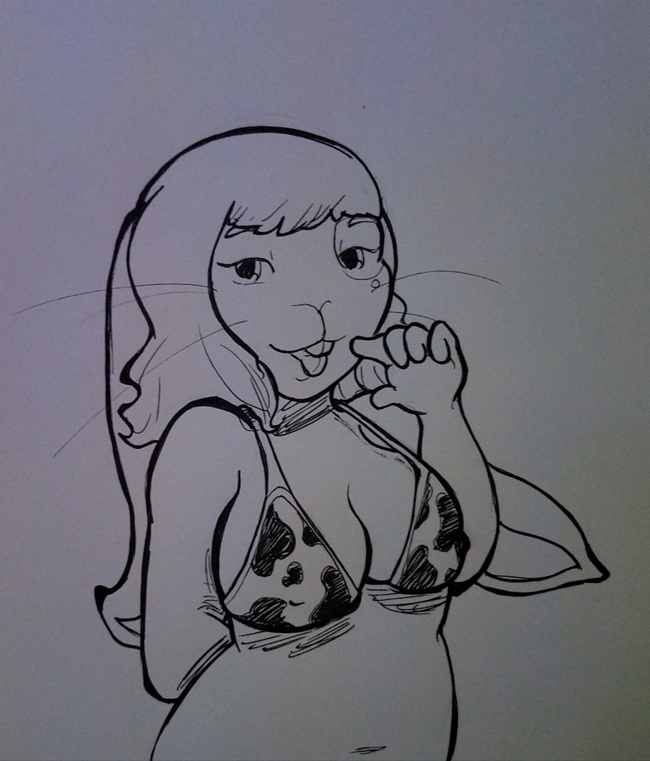 Cutest bun. I love the cow print top and her playful expression. The way you've drawn her ears is so
