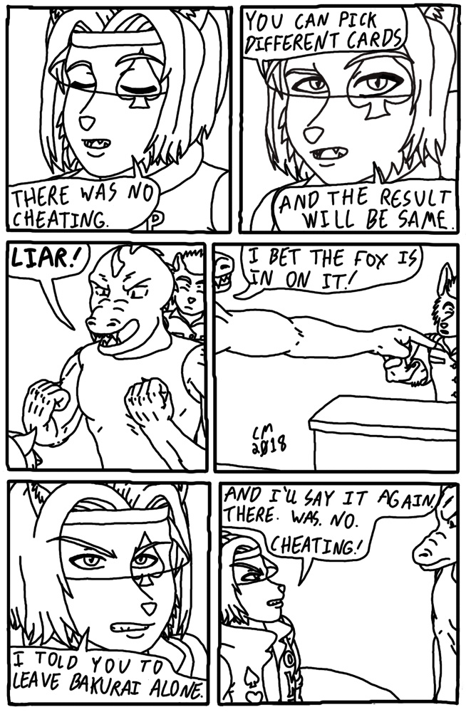 A while back I told the people of FurAffinity that Rokoji, Maisa, Daisamon, Ronon, Santo, and Kari would remain hidden until they're introduced in a comic I would make for the fighting game project. And I've kept that promise so far!