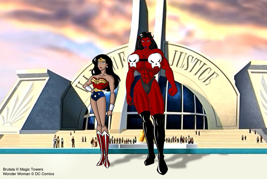 Here's a size comparison of Brutala in "normal" form next to Wonder Woman. I drew Wonder Woman off a picture from the Justice League cartoon, using it as a reference. I drew Brutala next to Wonder Woman to give an idea of how big she is. I tried to do her in the same style.