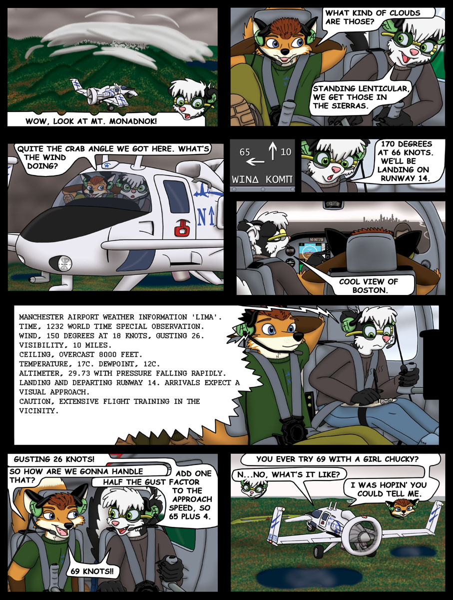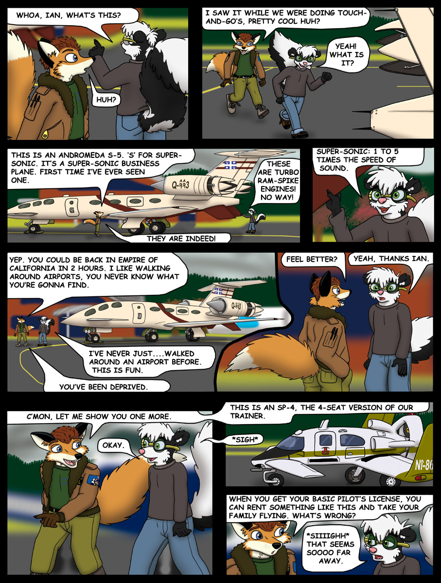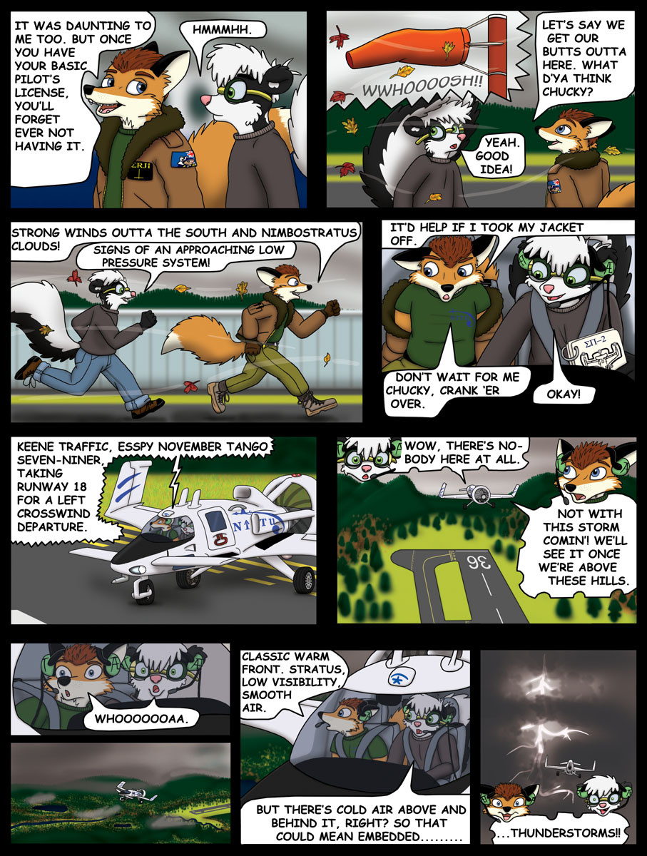 This page was a lot of fun, but frustrating. After a new hard drive and a new tablet later, it's finally done. Just to avoid any confusion, in panel two, the view of the windsock and the view of Chucky and Ian are from opposite directions, so the windsock and Chucky's tail are blowing opposite each other.