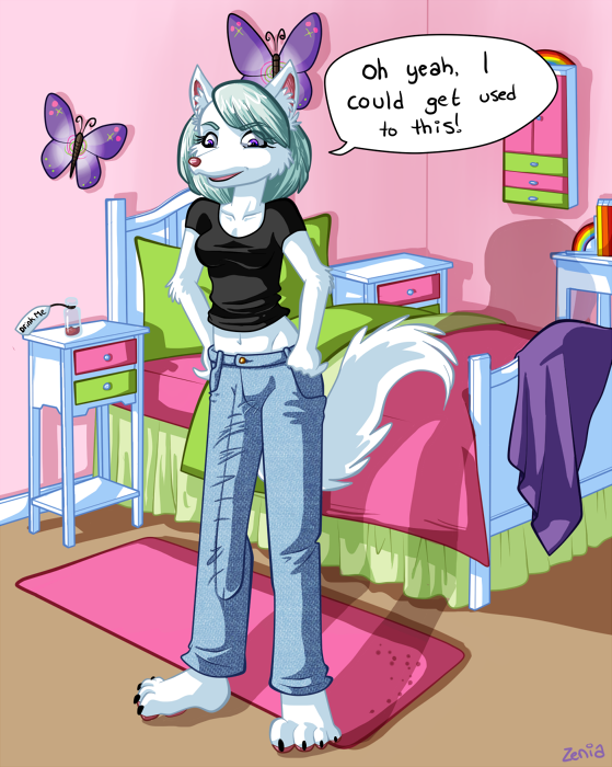 K i don't look at hermaphrodite art that often and can only assume that bit on her right leg is the pluming and if so then how the dose she even walk like that? its a mystery. O_o