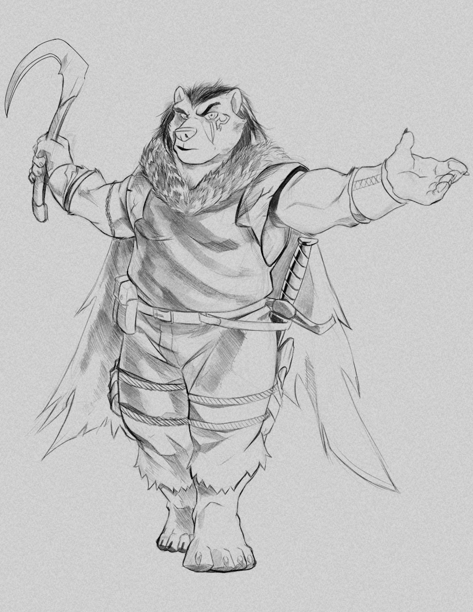 I recently got involved in a DnD campaign with my old roommates. This is the sketch of my character, B'Ron the druid
