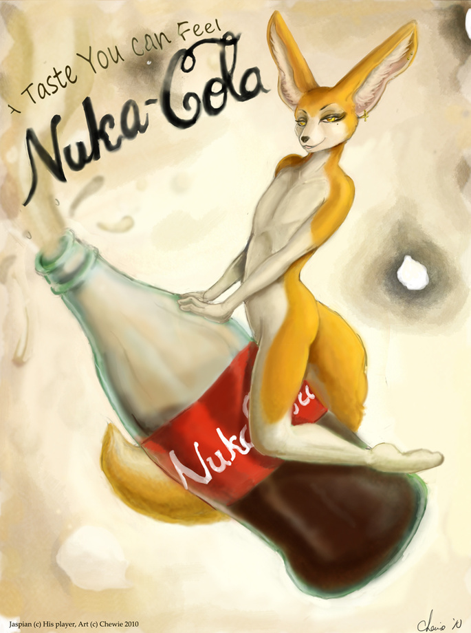 A commission for Jaspian meant to be an advertisement from the furrified world of Fallout. Was done celebrating the release of New Vegas