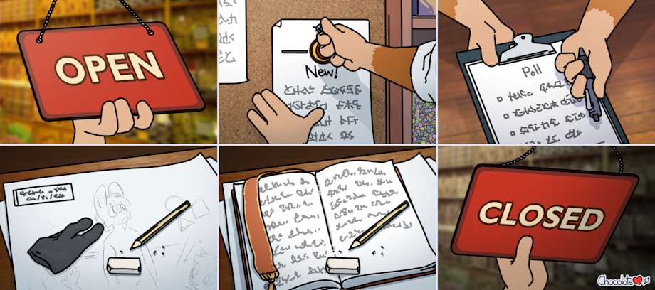 Open for commissions notifications - this is for my commiss.io page to make it very clear when my queues are open for whoever decides to check the page directly Noticeboard - general news, updates, notification posts etc Poll clipboard - pretty much self explanatory Sketch paper - concept art posts or YCH slots for the YCH section of the site; namely ideas that can be bought but which don't have any premade artwork to show for it Diary - journal posts, also fairly self explanatory Closed for commissions - same as the open notification, but for when I'm closed.