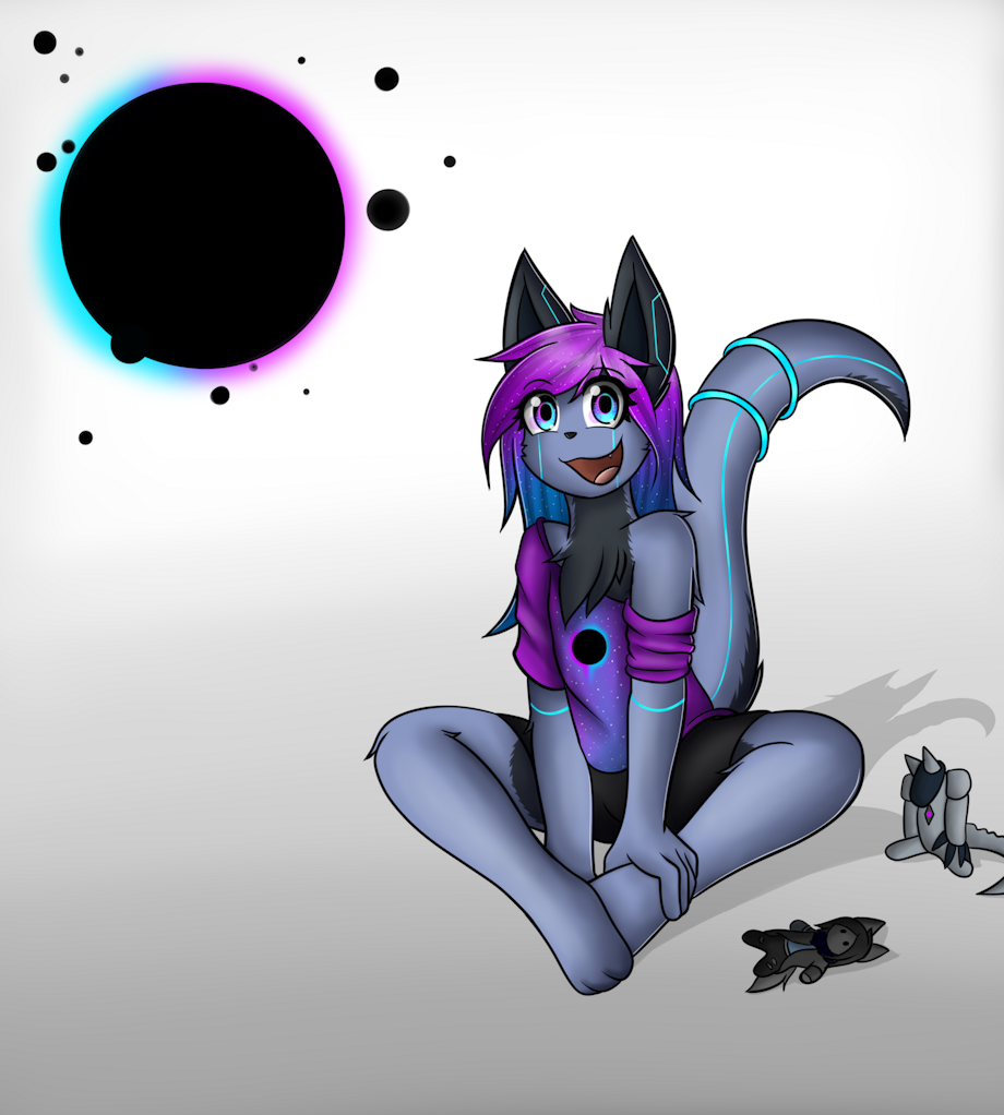 looking at the color of her eyes/blackhole, is she spinning? left side towards us (blue shift), right side away (red shift)