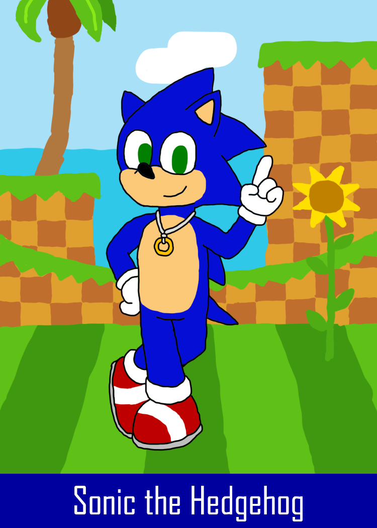 Sonic isn't that different from his game counterpart, being a sporty and fun-loving adventurer who stands for his ideals. He lives in Green Hill on South Island, but is usually away on an adventure. In terms of appearance I basically just used his design from the movie because that's my favorite look for him. The gold ring around his neck is a good luck charm his mother gave him before he moved to South Island.