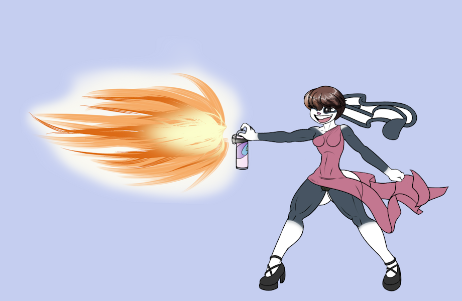that was too fun to not follow up on. "Idea that just randomly came to me today: Extremely girly, very classy looking French styled advertisement for hairspray featuring Luna with some very tressed up hair over one eye, makeup, lipstick, slinky dress, pouty look...then she depresses the button and just, GIANT blue flame and hellacious grin."