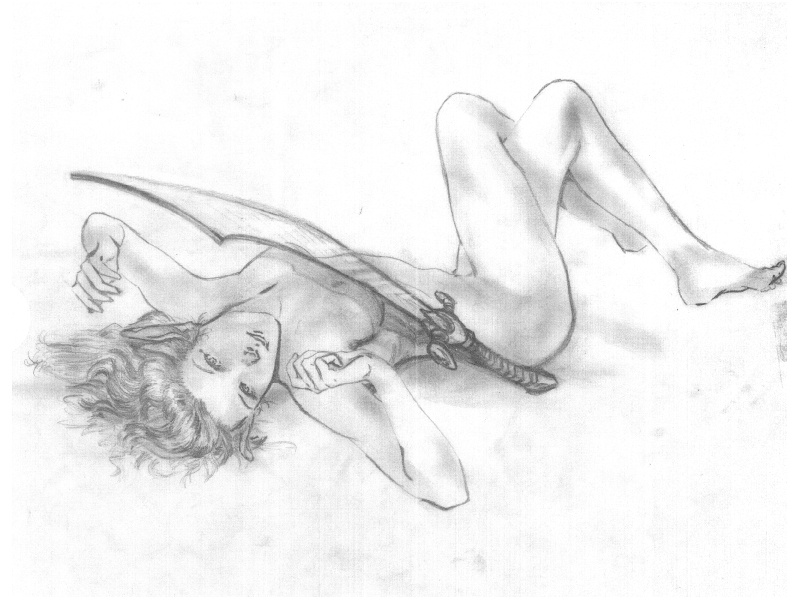 Jhona lying with ice scimitar