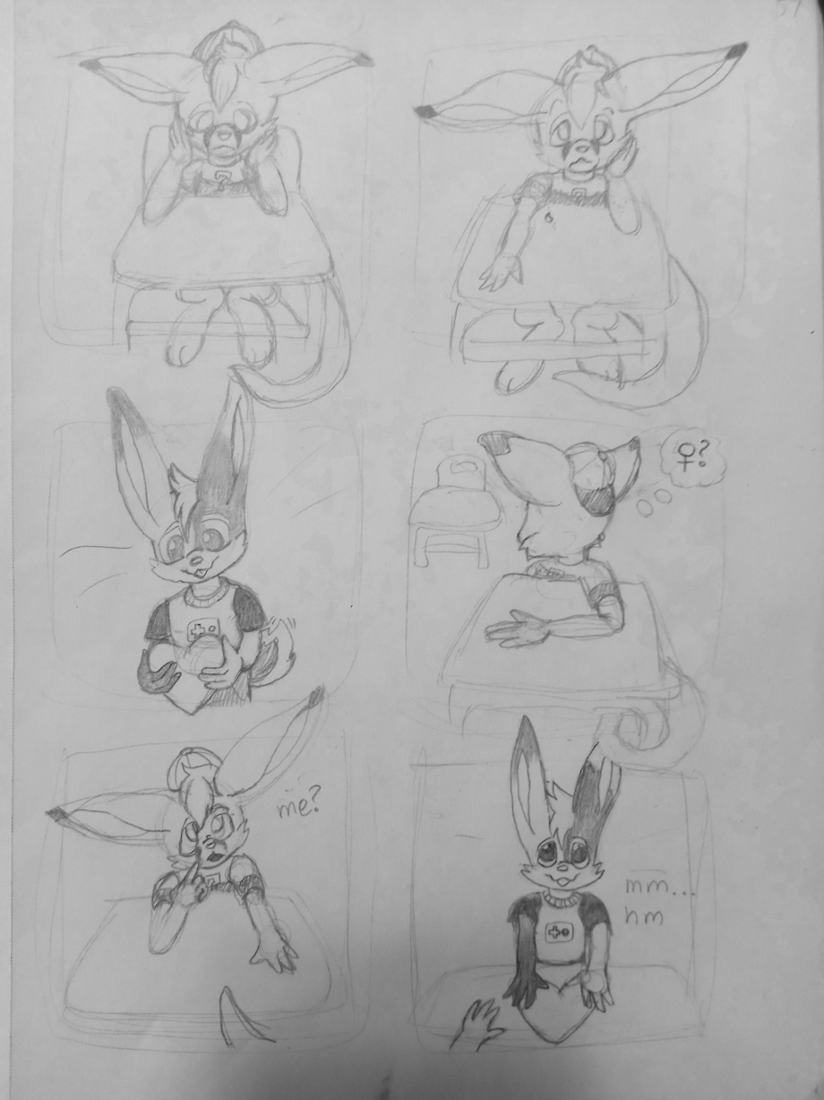 In a kind of meta way I came up with the idea that in-universe Kyaw Bits would have his own crush on Edwin Ohm, a teenager. This makes perfect sense given Kyaws character who is completely boy obsessed and seems to like older boys too in addition to boys his own age. Kyaw wants to give his own valentines to Edwin. He is just around the corner to ambush Edwin with the surprise. Edwin is distracted with his music and his thoughts. Why not show Edwins reaction? Because i didnt want to assume a reaction for a character that is not mine. This is the moment of anticipation (butterflies in your stomach, symbolized here as butterflies hearts and rainbows above kyaws head) before you get to see the other persons reaction.
