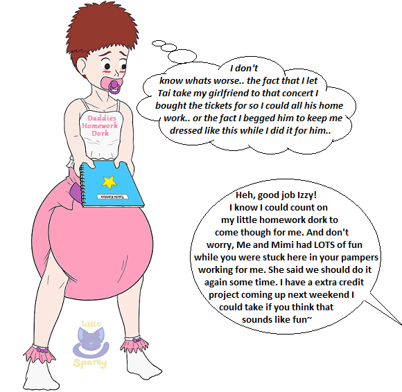 Izzy had been a closet sissy baby for awhile now, and he also liked the idea of being a helpless homework dork.
