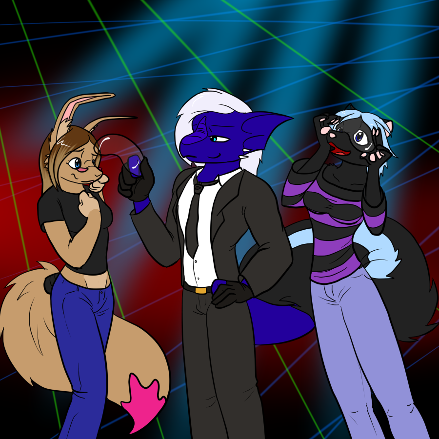"After a few hours in his casino, Rebecca and Nicole decided to hit the grand opening of Lovac's new club. While Nicole was a natural at a place like this, Rebecca had her reservations. Luckily, all first-timers get a free piece of raver gear absolutely free. So, why not? At least they were getting cute visors out of it."