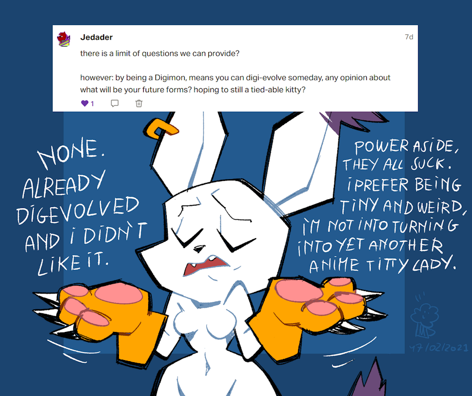 To be honest, I always get a bit disappointed when we get a bunch of time to imagine what kinda of neat creature/monster a Digimon can turn into, only for it to be a "human in somewhat unusual clothing".