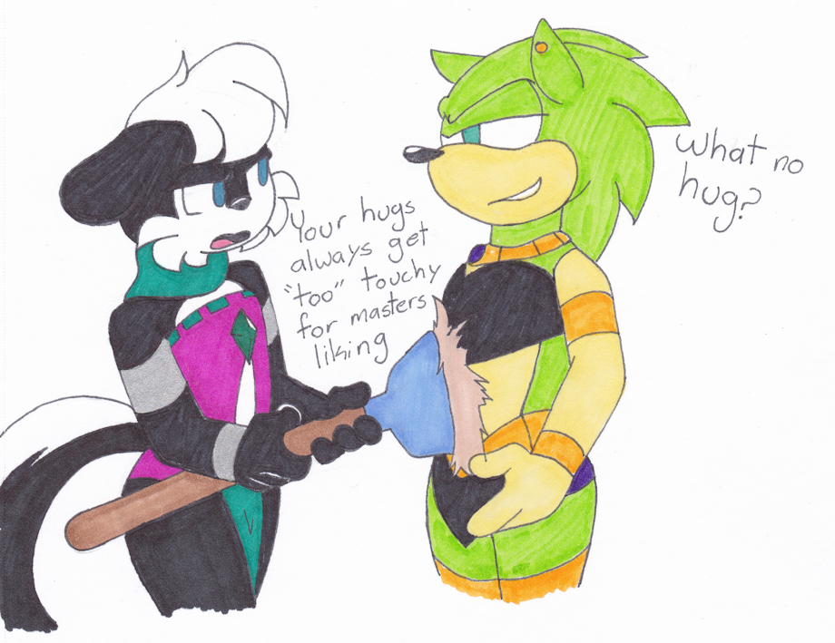 Hug: Scourge just wants to give Geoffrey a hug but he gets abit too touchy and Geoffrey doesn't plan on going any further with him.