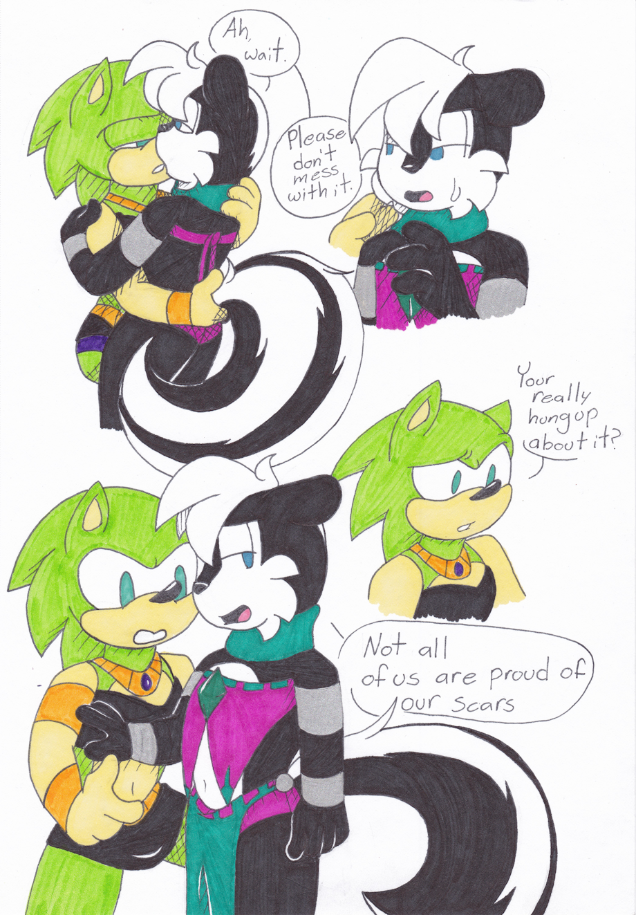 Scars: Geoffrey hates his branding scars, hence why he wears his scarf. Scourge doesn't have his scars just yet but he knows Geoffrey is talking about Ash.