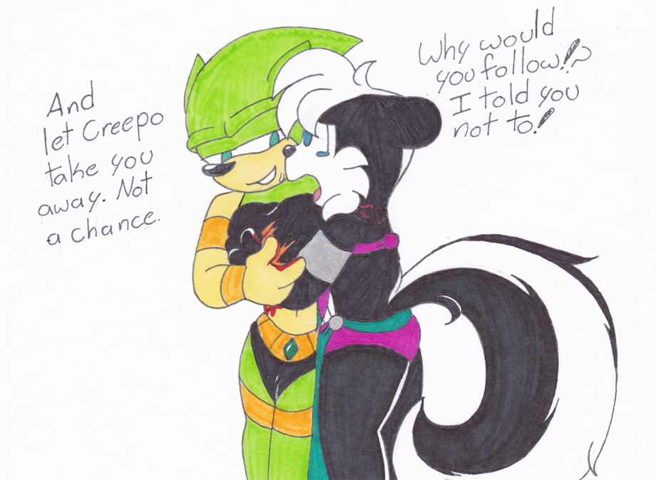 Hug: Scourge just wants to give Geoffrey a hug but he gets abit too touchy and Geoffrey doesn't plan on going any further with him.
